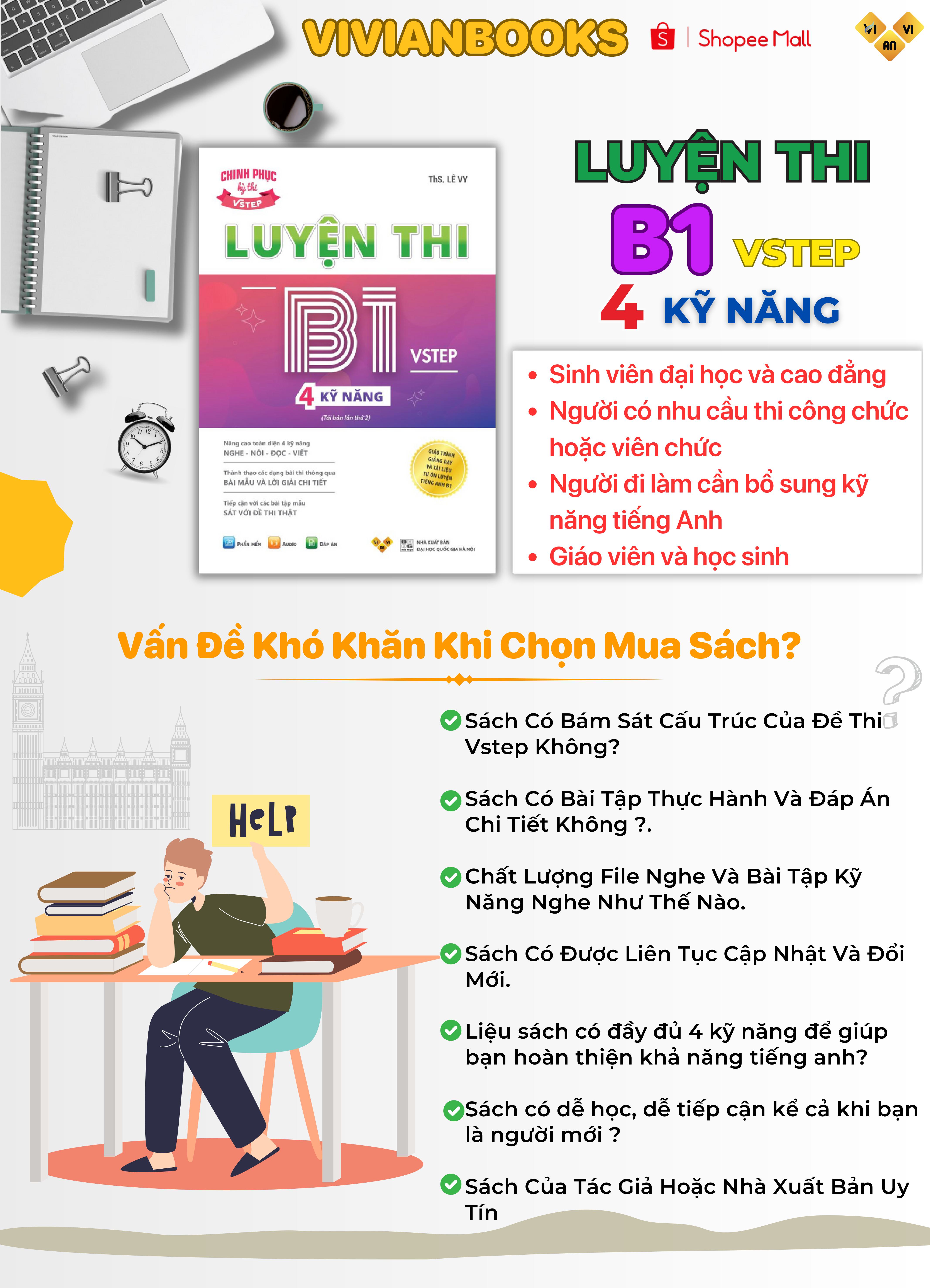 Sách Luyện thi B1 Vstep 4 kỹ năng - Ôn thi chứng chỉ tiếng Anh B1 bậc 3 (bằng B1 tiếng Anh) theo Khung NLNN Việt Nam