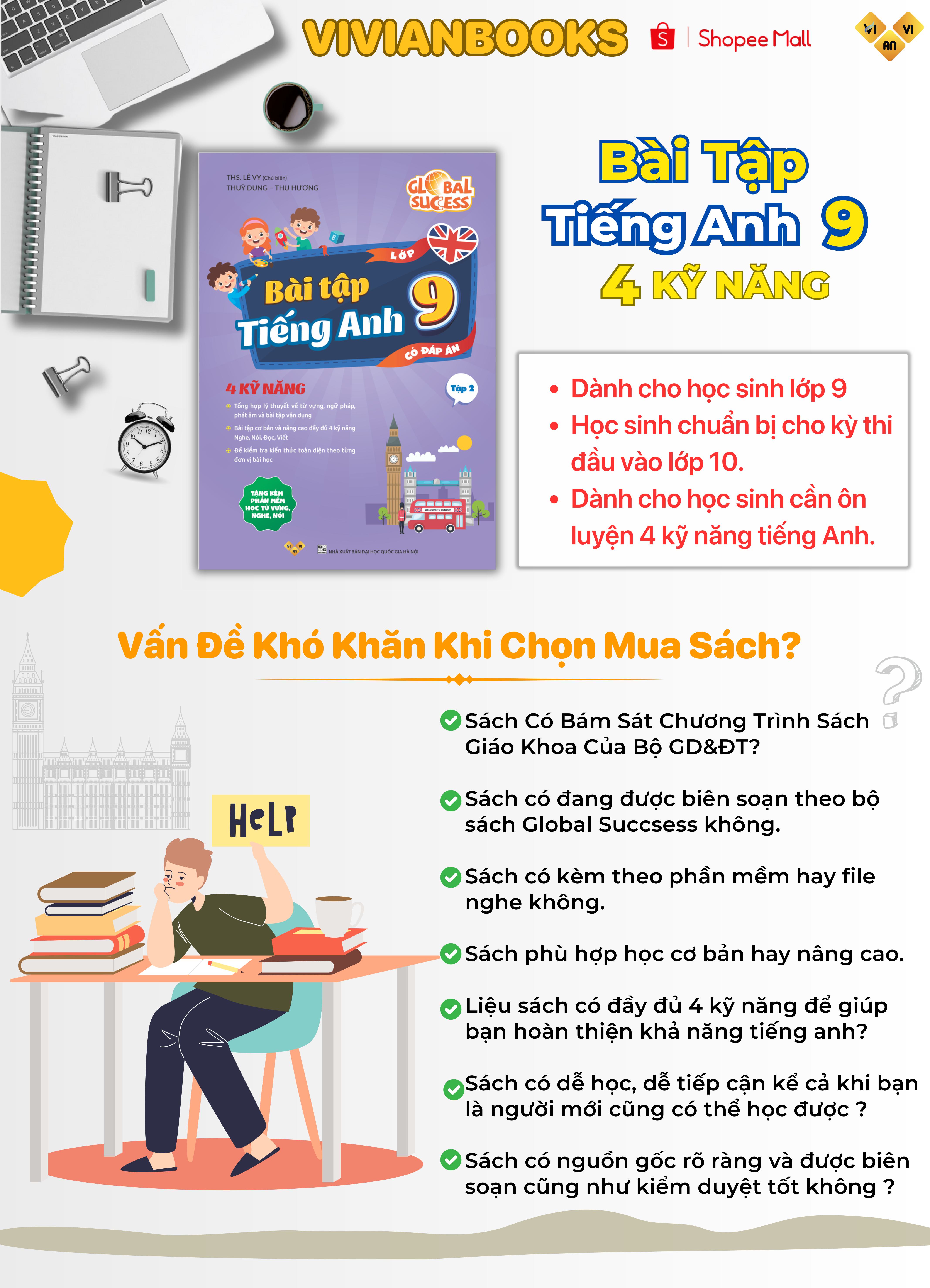 Cuốn sách Global Success - Bài tập tiếng Anh lớp 9, 4 kỹ năng bám sát sách giáo khoa theo chương trình giáo dục phổ thông mới. Sách có thể dùng cho buổi học bổ trợ tại trường học hoặc dùng làm sách tự học (tặng kèm đáp án).